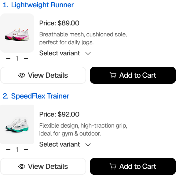 24/7 AI support for instant answers, order tracking, and product suggestions.